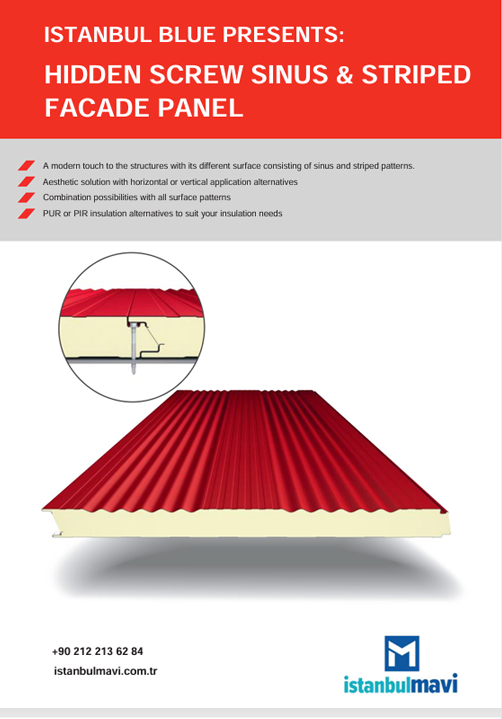 Fatxadako panela, torloju estalkirik gabe eta sinus & lerrokatua motako azalarekin